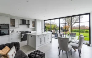 Our clients in Great Harrowdon came to us with a vision to completely transform their family home through a comprehensive refurbishment. The downstairs area had become tired and outdated, with an old kitchen that no longer met their needs and dated French doors that limited natural light and the sense of space.